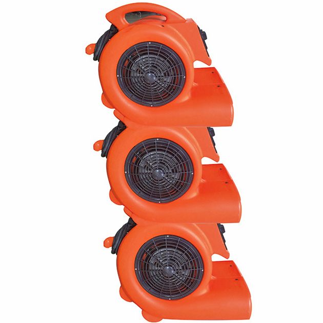 Profi-Radiallüfter mit geeichtem kWh-Verbrauchszähler für die Trocknung von Neubau, Wasserschaden und Teppichen. Inkl. Schlauchverteiler-Aufsatz für 3 Schläuche.