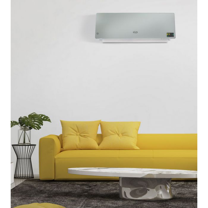 Der hübsche Keramikheizlüfter lässt sich einfach an die Wand montieren und bläst warme Luft nach unten aus, mit Fernbedienung und LED-Anzeige der aktuellen Raumtemperatur.